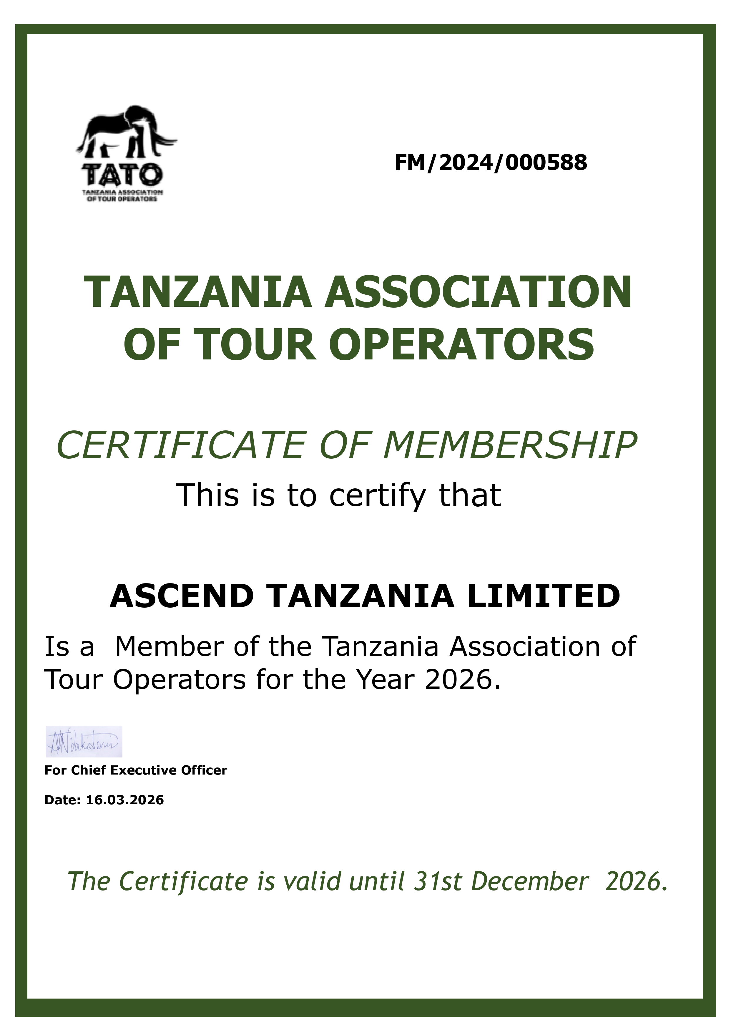Ascend Tanzania LTD is a Registered and Licensed Tour Company by the Government as well as Tanzania Tourism Licensing Board.